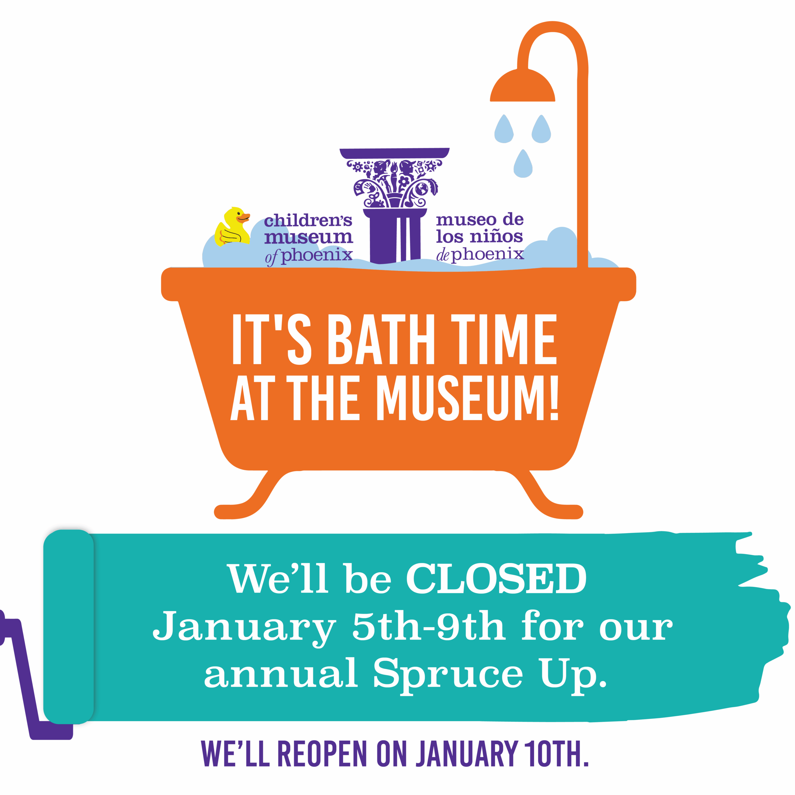 Children's Museum of Phoenix 215 N. 7th Street, Phoenix, AZ, United StatesThe Museum will be closed January 5th-9th for our annual Spruce Up! The Museum will reopen Saturday, January 10th, at 9 AM!